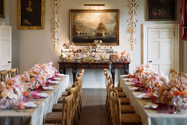 The drawing room holds indoor ceremonies for up to 130 guests, accommodating an additional 50 in the dining room. The house can be used for beautiful winter weddings for more intimate numbers, with fires roaring in the background.